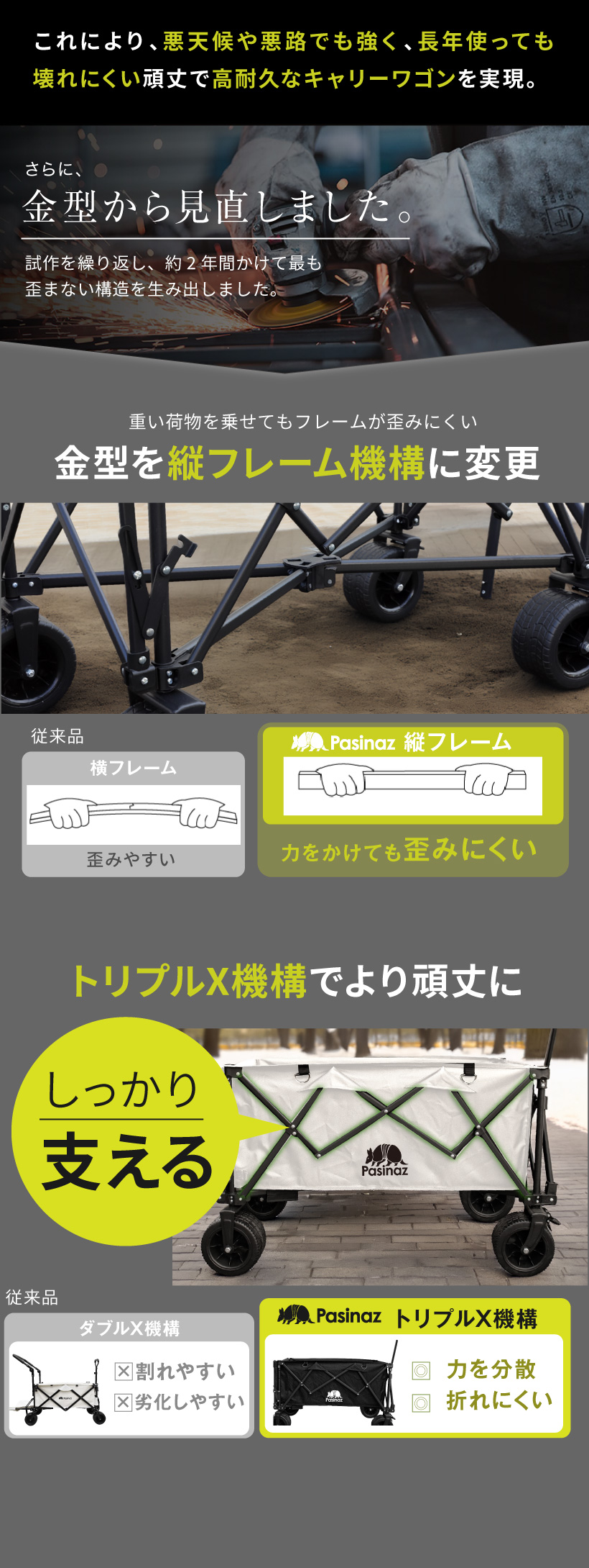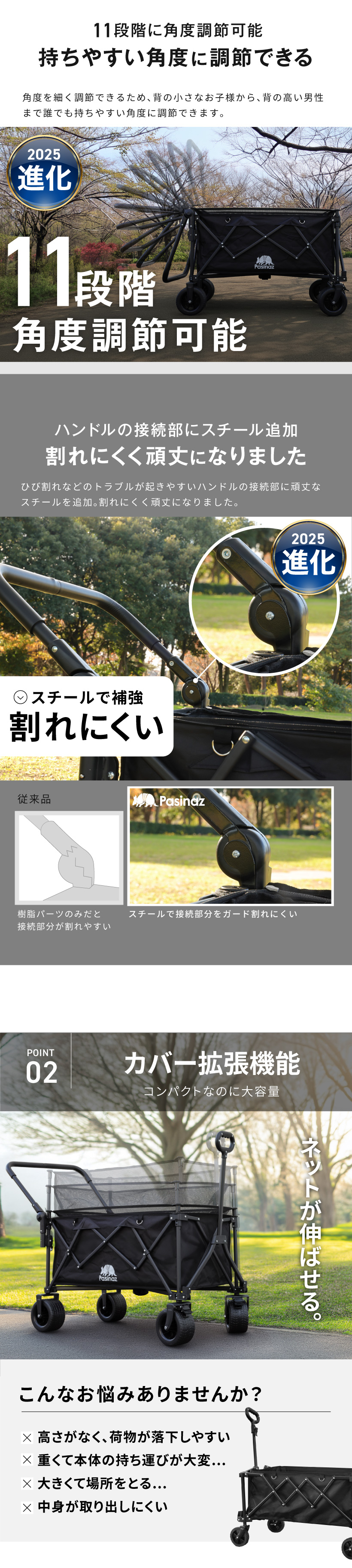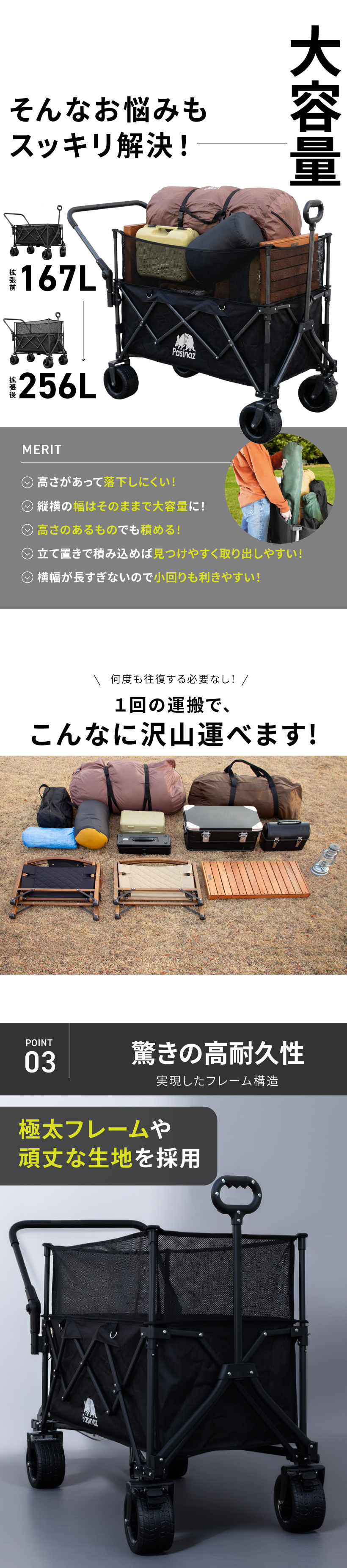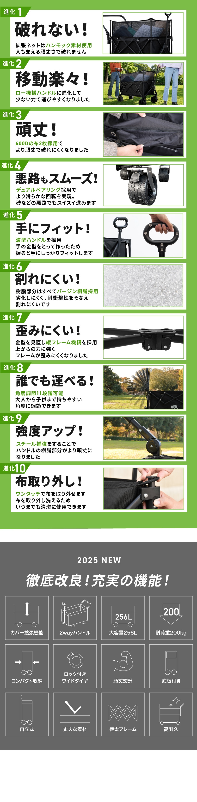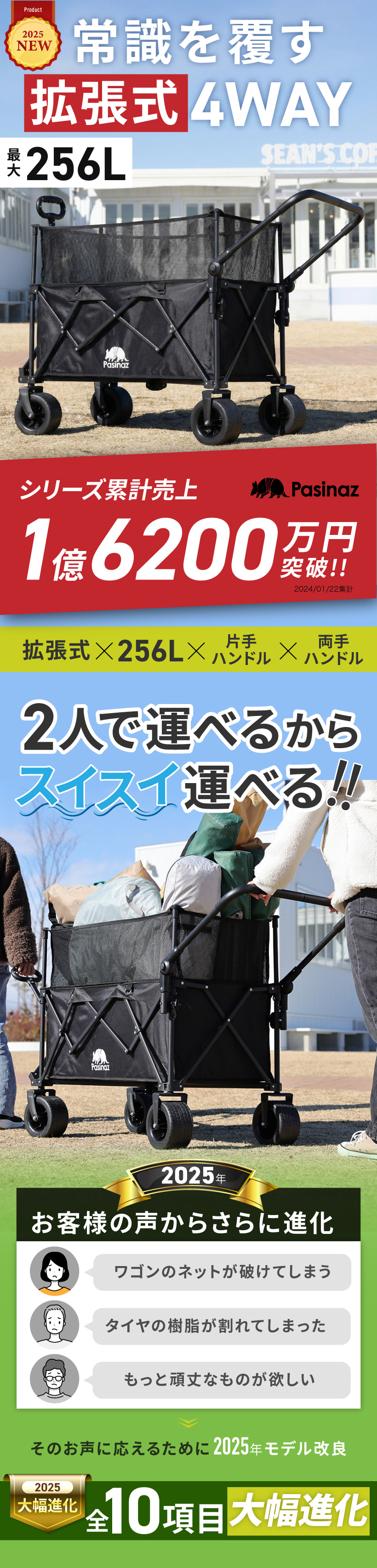変幻自在に容量やハンドルを変えられる今までにない4wayキャリーワゴンです。