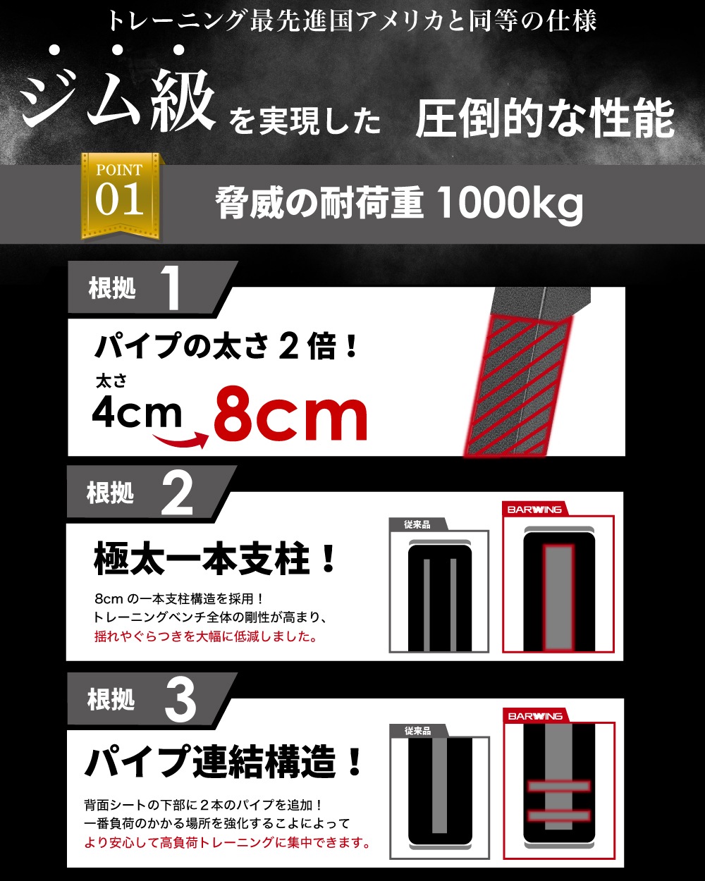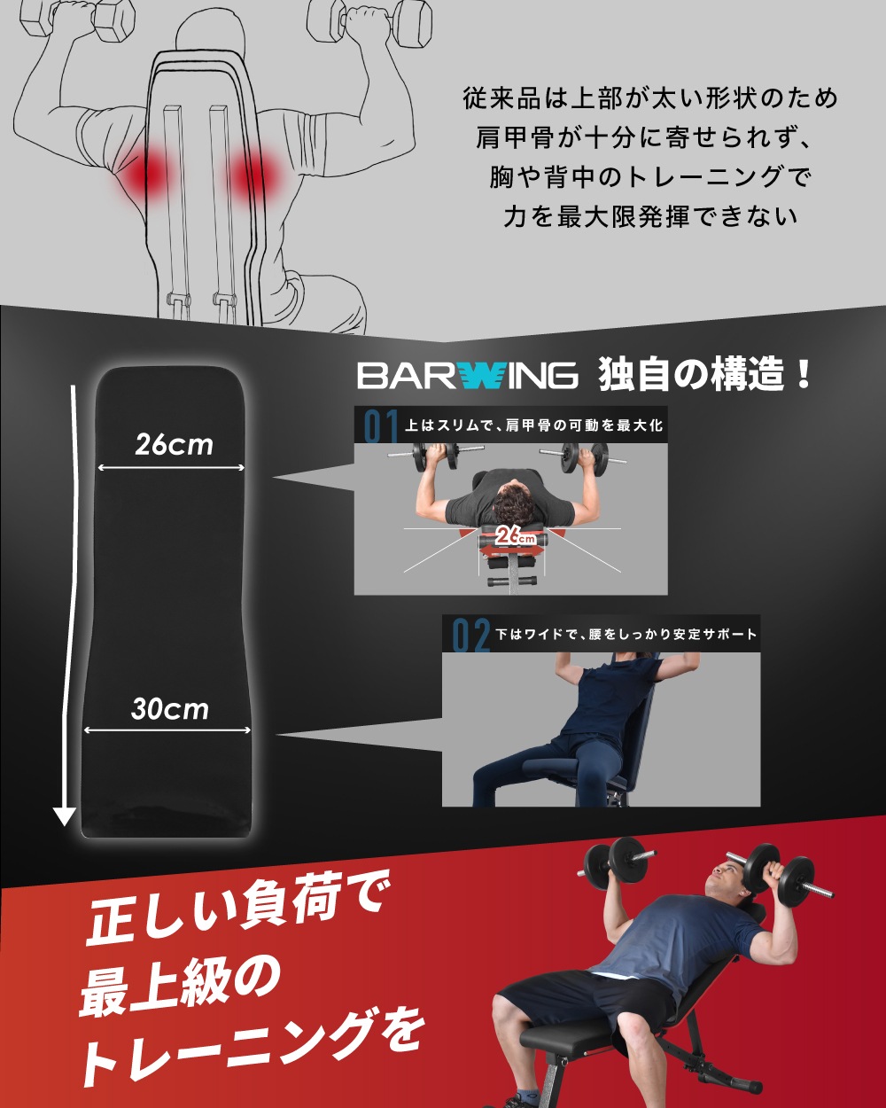 BARWING(バーウィング) 3WAY トレーニングベンチ プロモデル インクラインベンチ フラットベンチ ダンベル 耐荷重1000kgトレーニング ベンチ ベンチプレス ベンチプレス台 ホームジム トレーニングマシン 折りたたみ 筋トレ 自宅 腹筋 コンパクト 角度調整 (プロモデル)