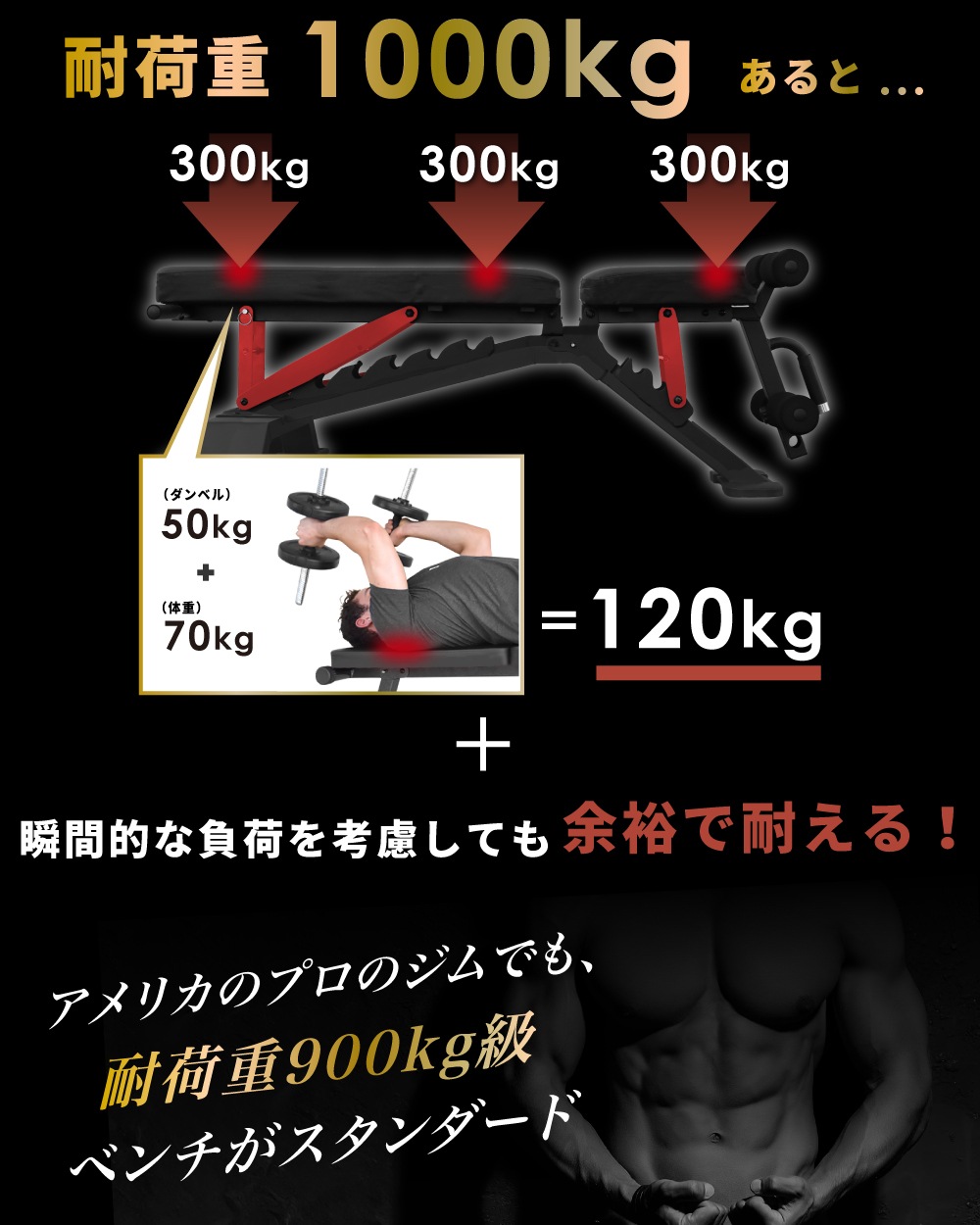 3WAY トレーニングベンチ プロモデル インクラインベンチ フラットベンチ ダンベル 耐荷重1000kgトレーニング ベンチ ベンチプレス ベンチプレス台 ホームジム トレーニングマシン 折りたたみ 筋トレ 自宅 腹筋 コンパクト 角度調整