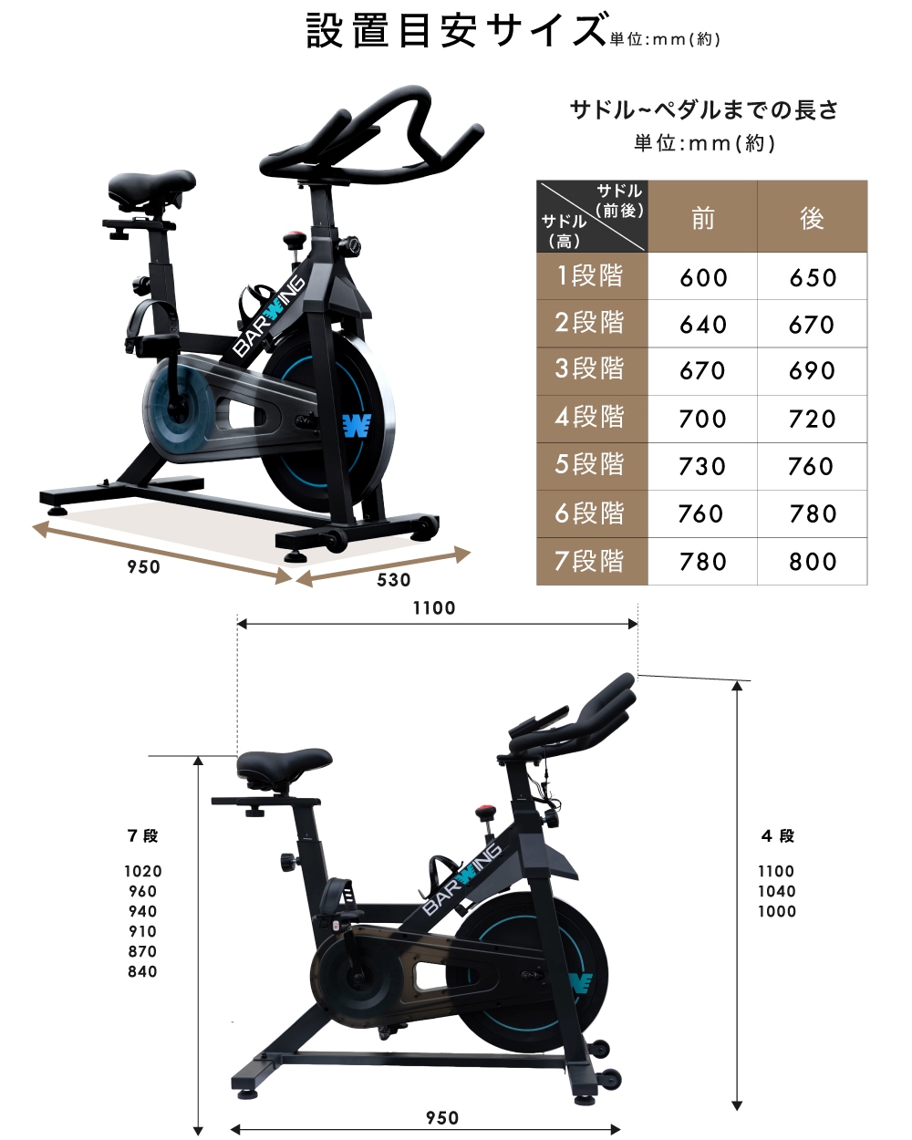 | 本体サイズ | W530×D950×H1100-1000(mm) | |