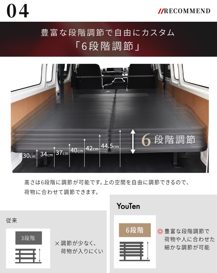 ハイエース 200系 標準 S-GL 1型〜7型 全年式 ベッドキット 高さ段階 6段階 ベッド ベットキット キット HIACE 車中泊マット 棚 板 収納 収納棚 格納 荷台 荷室 荷室棚 DIY フロアボード パネル 200 内装 GL ハイエースベッド